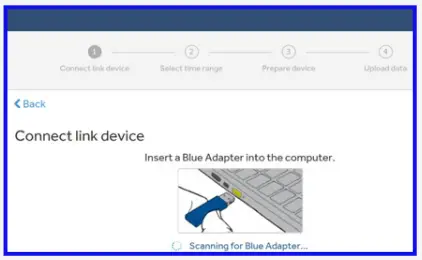 - Connect the blue adapter and follow the ‘Upload your data’ section below.