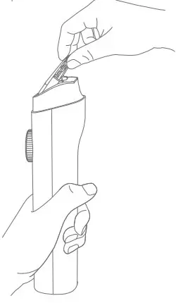 - To remove the blade head, turn the trimmer with its head up and teeth facing your direction, place your hand onto the blade headas shown in the figure below, then gently pull the head until it pops out.