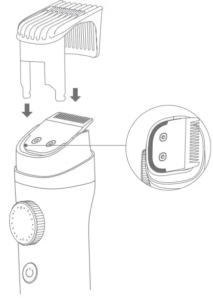 - To install the trimming comb, gently press it into the slot, clips first, until it clicks into place.
