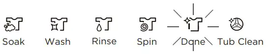 | Delicates | Dress shirts Blouses Nylons Sheer/lacy | Heavy Medium Light Extra Light | Hot Warm Eco Warm Cold Tap Cold | Extra-High High Medium Low No spin | • | • | • | • | • | • |
