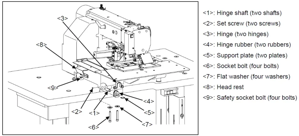 - The sewing machine is heavy. For the safety, please make sure to install the sewing machine head by more than one person.