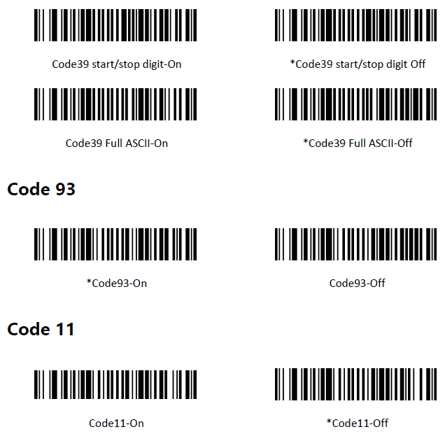 Solution:Please scan the code “Code 39 FULL ASCII-On”on page 18.