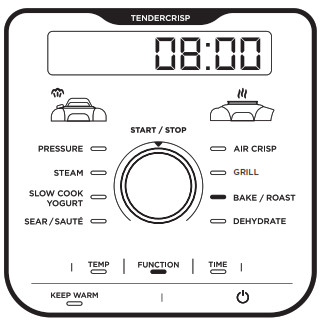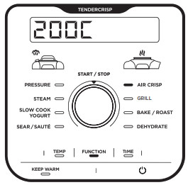- The crisping lid is open and needs to be closed for the selected function to start.