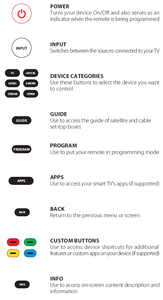 NOTE: Some of the buttons on the remote may not support all of the functions of the original device remote.