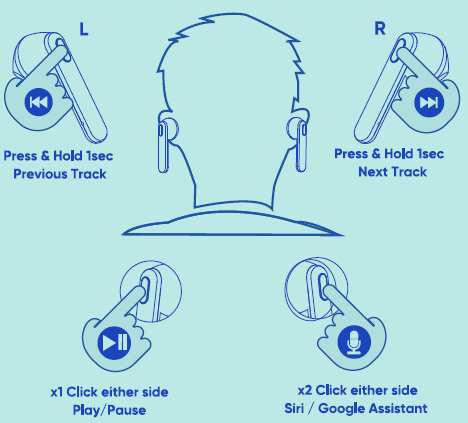 For your first-time use, take out both earphones from the charging case Do not push any buttons, they Will go into Pairing mode automatically
