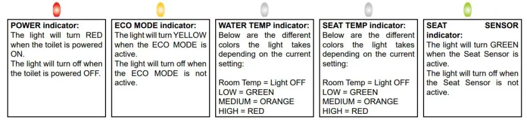 Pressing the LIGHT button on the remote control board will turn ON the toilet’s light, pressing the button again will turn it OFF.