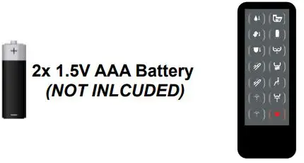 Load the remote with two AAA batteries. The battery compartment is located at the bottom back of the remote and is opened by firmly sliding the cover downward.