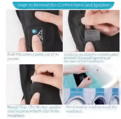 Please note that you MUST remove the control panel & speaker before washing the Bluetooth Headband. Follow the steps below: