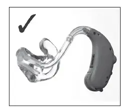Remember that the mould should face away from the hearing aid and not towards it as shown in the picture.