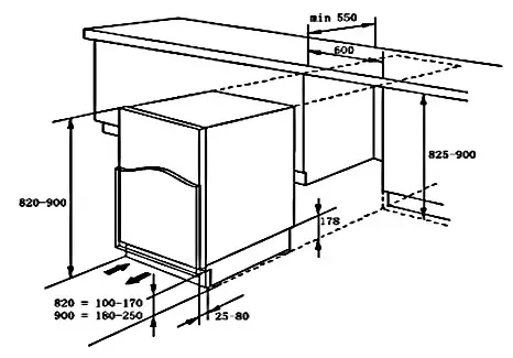 c. Installation below the worktop