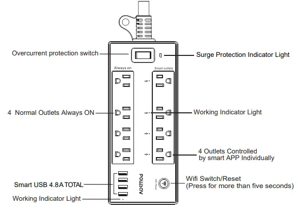 - Applicable Voltage Range: 100-240VAC 8 AC outlets built-in 1680 Joules surge protection