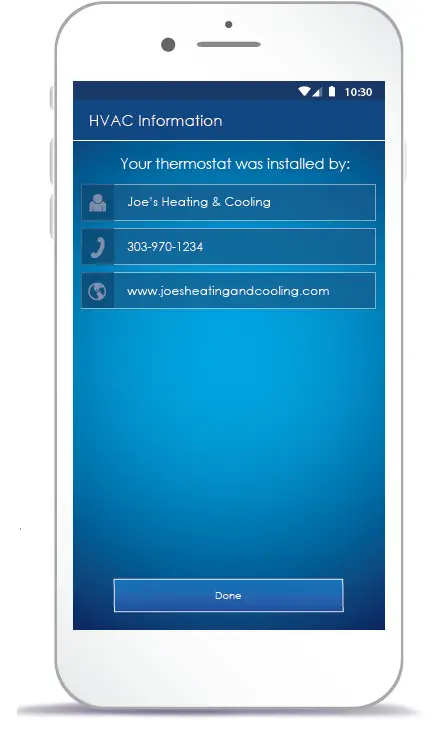 Before completing the process, you have the option to enter the contact information of your trusted HVAC professional. This will be stored throughout the app for quick access whenever your system requires servicing.