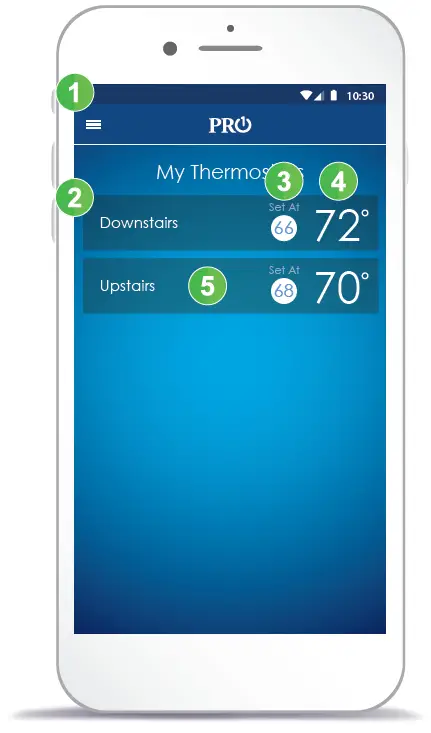Access Help, My Thermostats, Settings and more. - List Of Thermostats