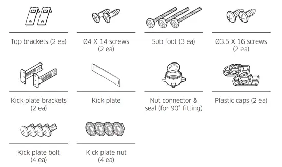 Make sure all the parts are included in the product package. If you have a question about the dishwasher or the parts, contact a local Samsung customer center or your retailer. The actual appearance of the dishwasher may differ, depending on your model and country.