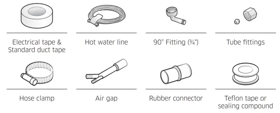 - You also need a 90° Fitting with 3/4” N.P.T. external pipe threads on one end and a fitting sized to fit your hot water line (copper tubing/compression fitting or braided hose) on the other.