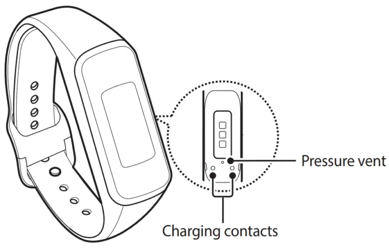 Do not insert sharp objects into the pressure vent. Inner components of the Galaxy Fit2 may be damaged along with the water-resistance feature.