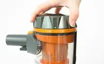 - With one hand hold the dust bin and with the other hand press the Dust Bin Release Button to disconnect the dust bin from the handle.