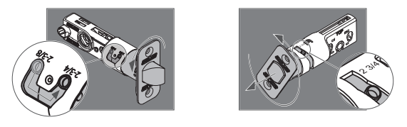 For 2 3/4″ backset, rotate and pull latch/bolt out to long setting.