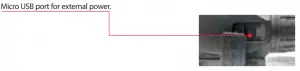 This unit is equipped with a Micro USB port for external power. The Micro USB port is located under the rubber cover on the side of the unit.