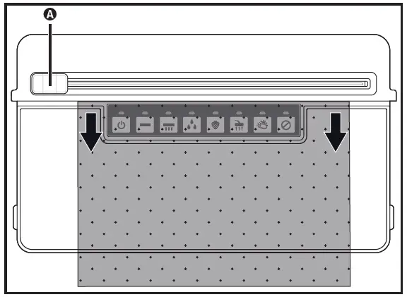 - Lay the open end of the bag as far into the appliance so that the opening of the bag is located centrally under the lower seal ring 3. The bag should be inserted no further than the rear limiters 6 and must lie between the front limiters 7. Otherwise, the vacuuming and sealing will not function correctly: