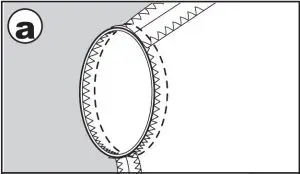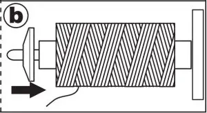 - Replace the bobbin holder into the hook race so that the tip (a) fits to the stopper (b) as shown.