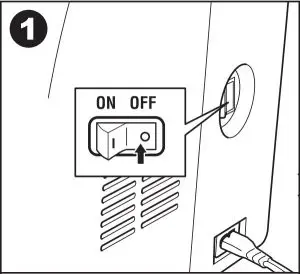 - Switch the sewing machine off (symbol “O”) when making any adjustments in the needle area, such as threading needle, changing needle, threading bobbin, or changing presser foot.