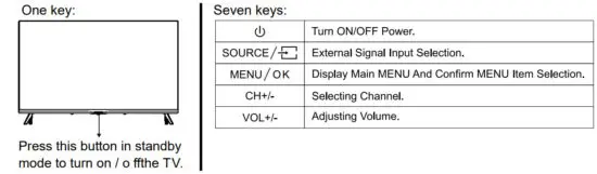- Connect the power supply, enter the standby mode (red light), and press the power button of the TV or the power button on the remote control to turn on the TV.
