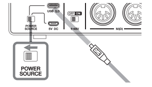Confirmation of Installation - Move the [POWER SOURCE] switch to the left and then connect the device to a USB 3.0 jack on the computer with the included USB cable.