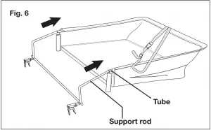 - Fit the support rod into the tube of the grass catcher (Figs. 5 & 6).