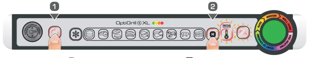 22-23-24 If you want to cook food to different personal tastes, open the grill and remove the food when it has reached the desired level and then close the grill and continue cooking the other food. The program will continue its cooking cycle until it reaches the ‘well done’ level.