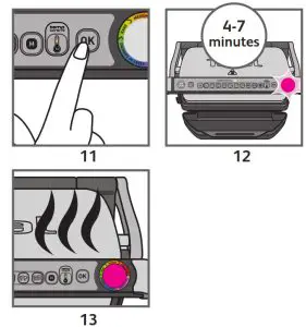 Note for very thin pieces of food: close the appliance, the button “OK” will flash and the indicator will stay “fixed purple”, press “OK” to ensure the appliance recognizes the food and that the cooking cycle starts.