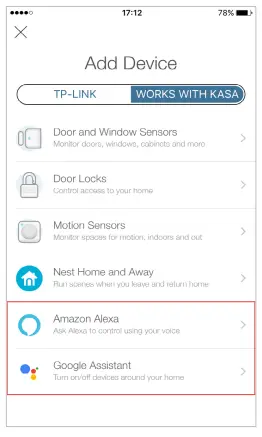 Launch Kasa app and go to Add Device > WORKS WITH KASA > Amazon Alexa / Google Assistant for detailed instructions.
