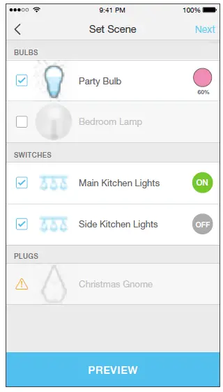 Please keep in mind that SCENES can only be set and controlled once you’re signed in to your Kasa account.