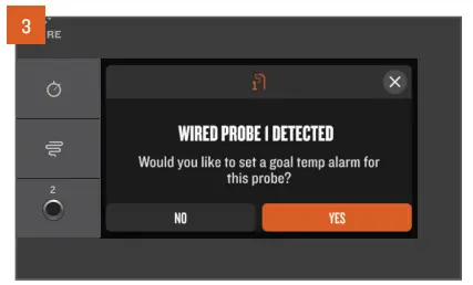 COOKING TO AN INTERNAL TEMPERATURE WITH PROBES How to set a goal temperature alarm for Bluetooth or wired probes. - To cook to an internal temperature, set a probe goal alarm. When you first connect a Bluetooth or wired probe, a popup will provide a shortcut to easily set a goal temperature alarm. Select YES and follow the prompts.