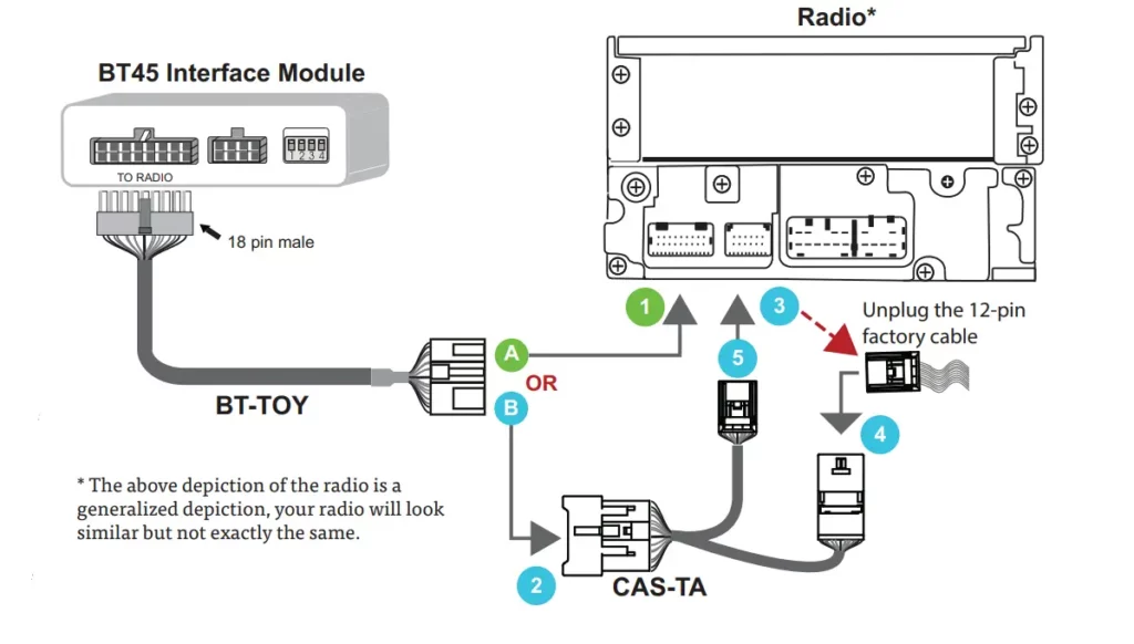Tundra 98 – 12 06 & older models with RSE (rear Seat Entertainment) requires BT-TOYR cable (1)