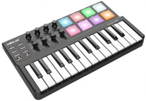 This is an ultra-compact MIDI controller which serves to control music software. It is equipped with 25/49/61 velocity-sensitive keys, 8 velocity-sensitive drum pads as well as 9 faders (PANDA49/61) and 8 rotary controls. The controller connects both PC and Mac(OTG convertor cable is required for connecting to Mobile phone and Pad). You can do without a bulky power adapter as power supply is via the USB bus. It’s also available to download the full user manual and other setting instructions from http://en.worlde.com.cn/.