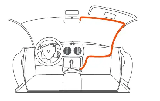 - Carefully route the power cable around the windscreen and tuck it under the trim.