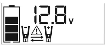 - If the clamps are connected incorrectly with regard to polarity, the backlit LCD screen will display the Battery Status Icon, Battery Voltage Indicator, and the Clamp Icons. The Alarm Icon, the “+” and ”–” signs and the Reverse Polarity Icons will flash and the unit will sound a continuous alarm until the clamps are disconnected. Disconnect the clamps and reconnect to battery with correct polarity.