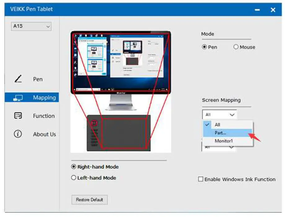 Then go to the next page, select one of the following three ways to define the pen tablet partial.