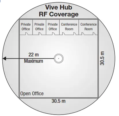 - All wireless devices must be within 22 m of the Vive hub. This range applies to both Clear Connect devices and Wi-Fi.