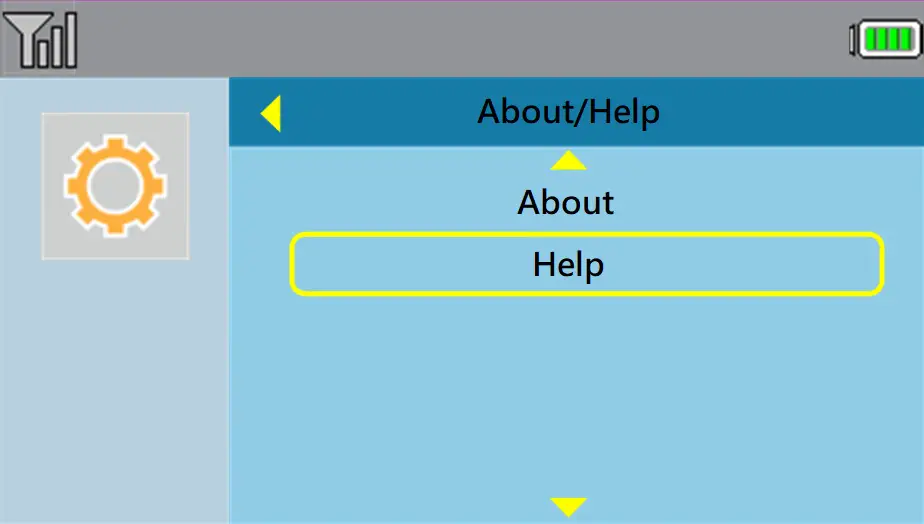 2. Press orsymble-1 to choose About/Help, then press SELECT.