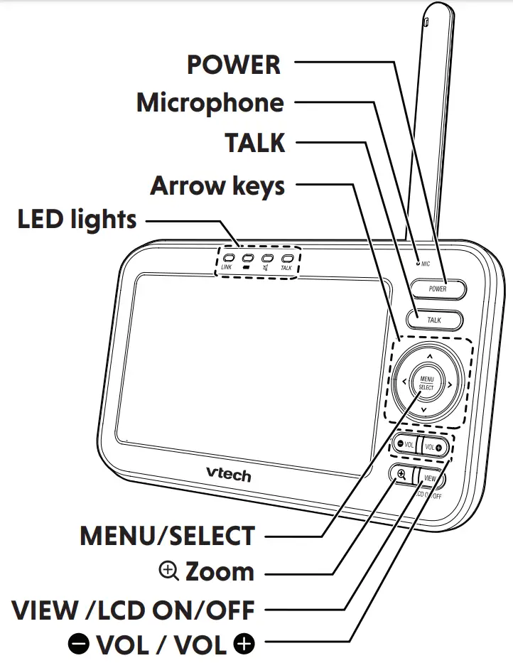 Once you power on both your baby unit and parent unit, your parent unit displays image from the baby unit, and the LINK LED light turns on.
