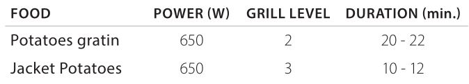For browning, grilling and gratins. We recommend turning the food during cooking.   Recommended accessories: Wire rack