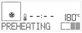 The forced air function requires a preheating phase: Once the function has started, the display indicates that the preheating phase has been activated.