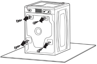 Loosen bolts with a 5/8″ (16 mm) wrench. Slide each bolt and spacer to the center of the hole. Pull bolts and plastic spacers from the back of the washer. Discard bolts and spacers.