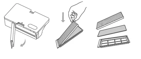 - To prevent water from getting in the fan, the 2-in-1 dust compartment with water tank and the filter must dry completely before reinstalling into the vacuum-mop.