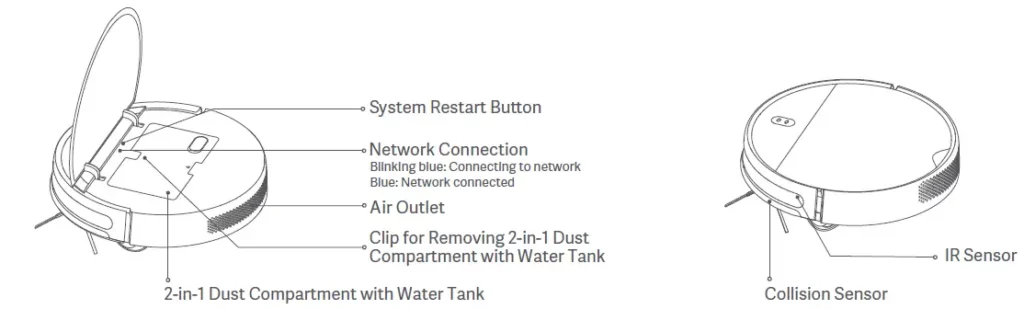 - Regularly clean the 2-in-1 dust compartment with water tank to prevent dirt buildup. This will help the vacuum-mop maintain optimal performance.