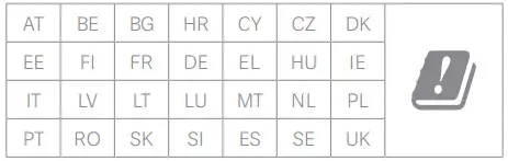 This device may be operated in all member states of the EU.   Observe national and local regulations where the device is used.This device is restricted to indoor use only when  operating in the 5150 to 5350 MHz frequency range in the following countries: