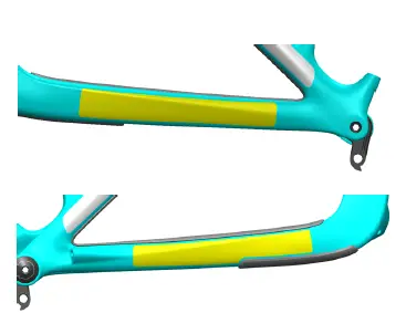Place the lower end of the down tube protector decal approximately 3mm above the rubber protector.