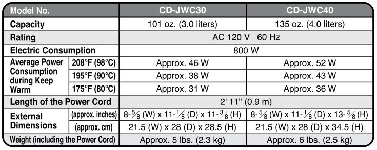 Zojirushi CD-JWC30/ CD-JWC40 Micom Water Boiler and Warmer Operating Instruction Manual